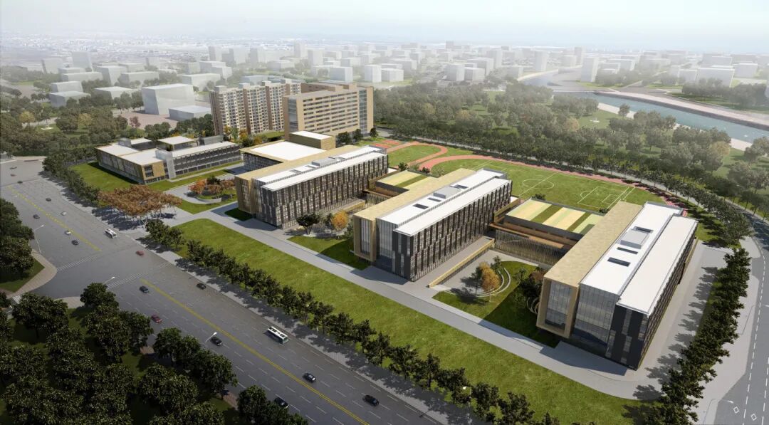 校园建筑面积 16.2 万平米。拥有 400 米跑道的操场、千人剧场、多功能厅、幼儿园、学生宿舍楼、教职工公寓楼和若干体育场馆 ( 含游泳馆、冲浪馆、篮球馆、足球场、羽毛球馆、击剑中心、兵乓球馆、网球场、室内高尔夫球场、蹦床馆、健身房、动感单车教室等 )。