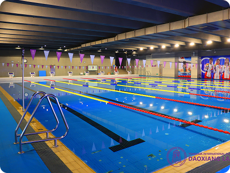 The campus covers a area of 162,000 square meters. It includes a 400-meter track and field stadium, a 1,000-seat theater, a multifunctional hall, a kindergarten, student dormitories, faculty apartments, and various sports facilities, such as a swimming pool, surfing pool, basketball gym, football field, badminton courts, fencing center, table tennis hall, tennis courts, indoor golf range, trampoline gym, fitness center, and Spinning studio.