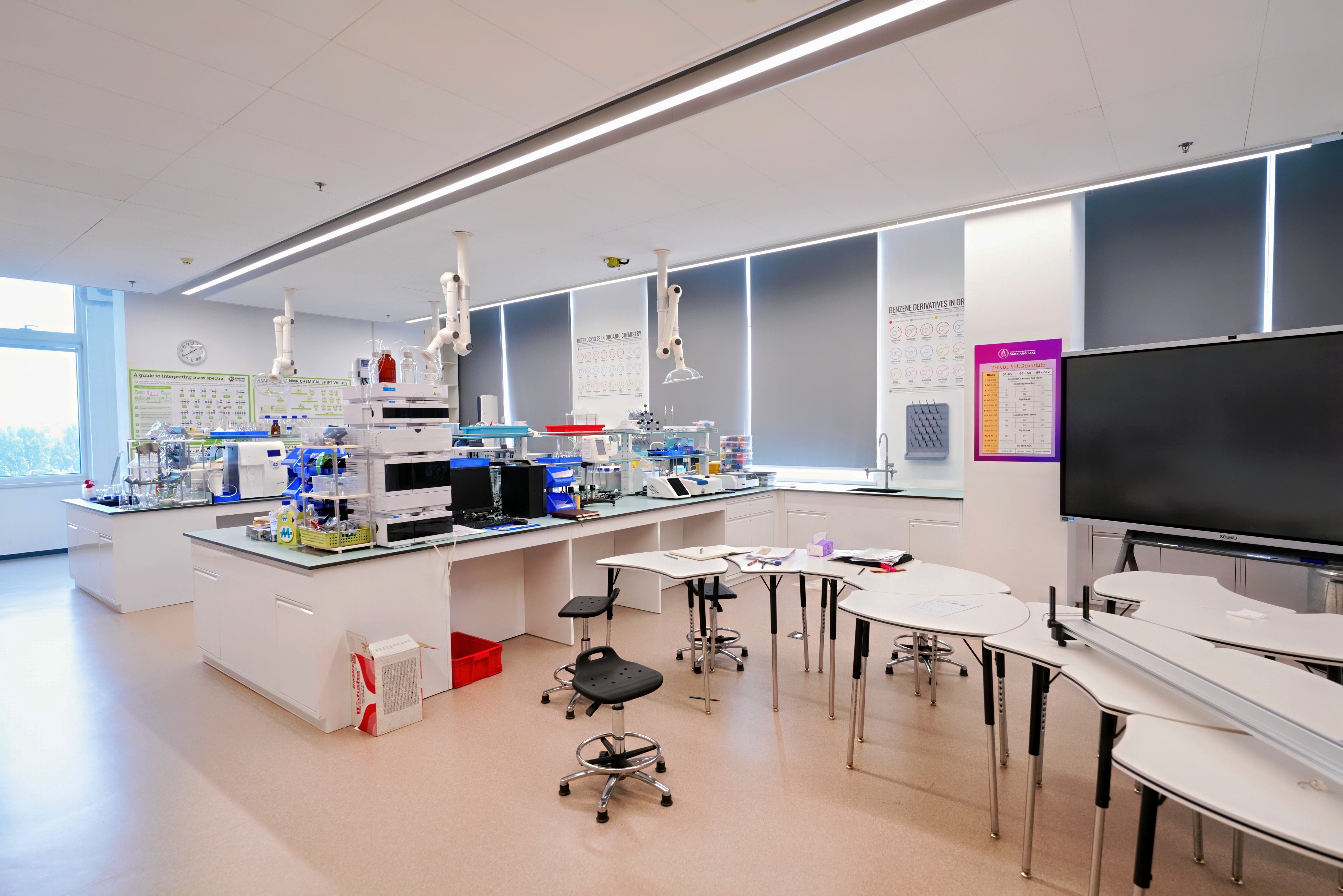 The school also features primary and secondary libraries with nearly 100,000 volumes, a paleontological fossil museum, professional music classrooms, art rooms, multiple dance studios, numerous science laboratories, an advanced research lab, a cafeteria, and a campus café.